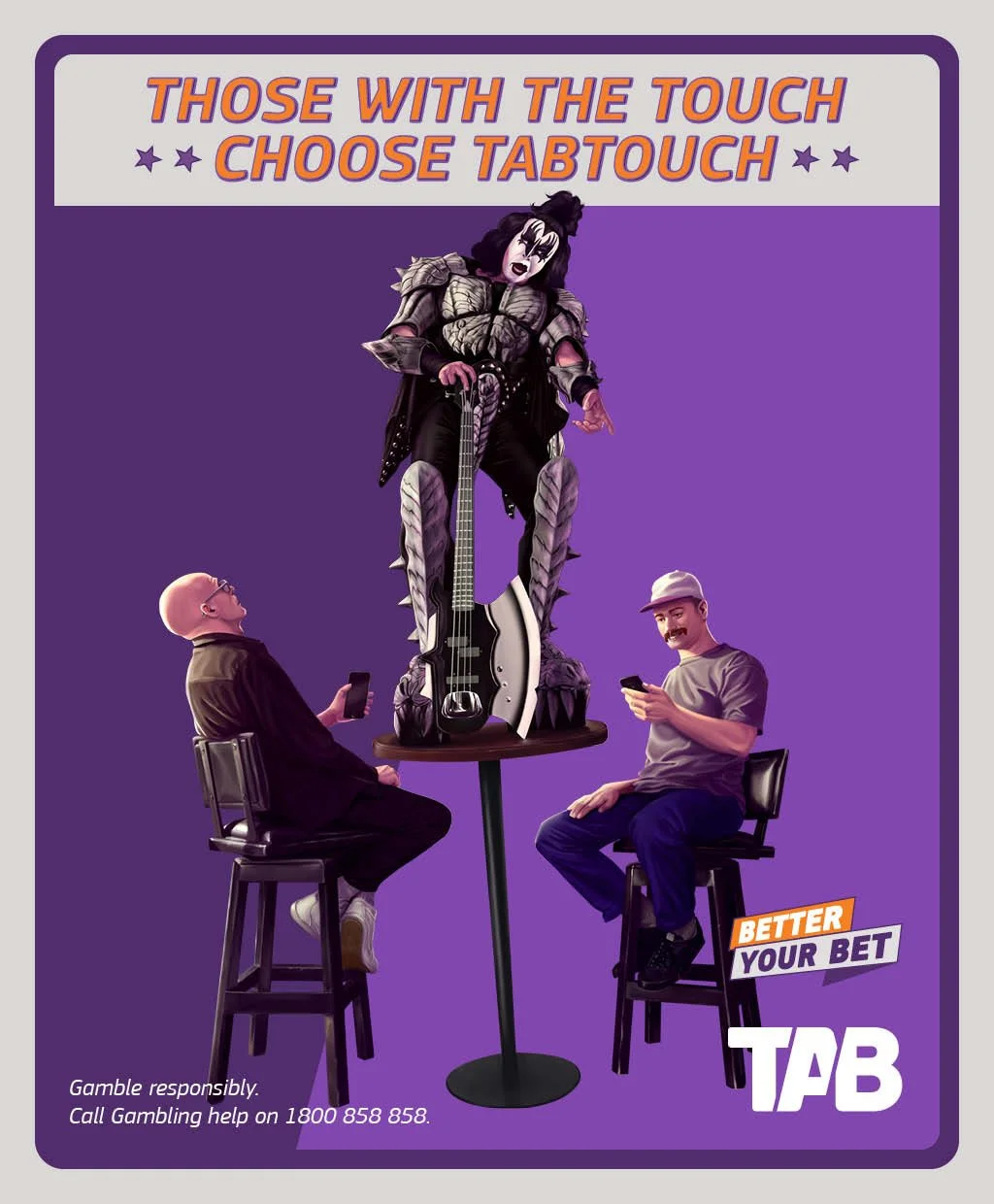 Kiss’ Gene Simmons is the face of TABTouch, representing the passion and enthusiasm of punters.